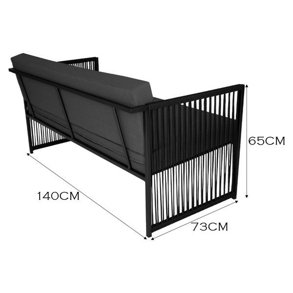 Fabricada com aço carbono, oferece resistência e durabilidade com acabamento em fibra sintética confere um toque sofisticado. Possui assento e encosto em estofado Impermeável com espuma D28, trazendo uma experiência de assento aconchegante, tornando um local ideal para momentos relaxantes.