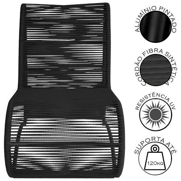 Fabricada em Alumínio com Pintura Eletrostática, não Descasca, o mesmo e tramado na Fibra Sintética possui Proteção U.V, proporcionado Resistência ao Sol, dando mais Durabilidade.